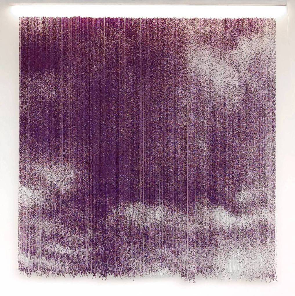 One in a series of Fodomosaics™, “Swell” is made of 300,000 tiny bits of glass hand strung in a precise sequence to create a pictorial beaded curtain.
