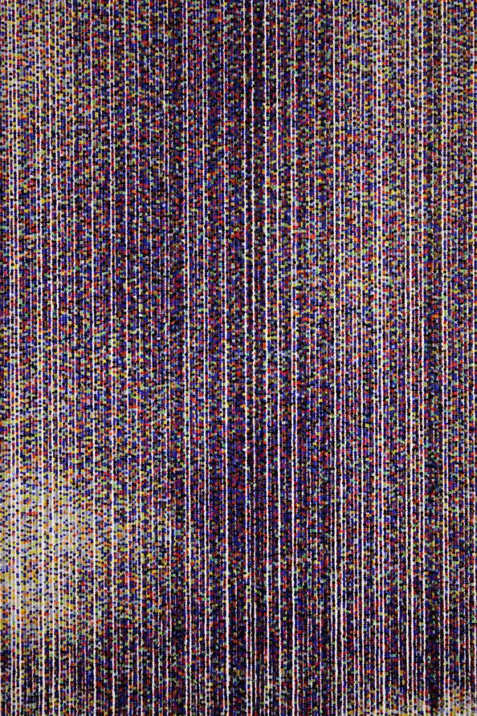Upon close examination, the array of translucent jewel-like tones appears optimistic and representative of individuals, inclusion, community and collective effort. Each bead represents 1,111 people in the United States and conjures the Latin phrase “E Pluribus Unum” inscribed on our currency and translates as “out of many, one” to reflect both the art process itself and what it symbolically represents.